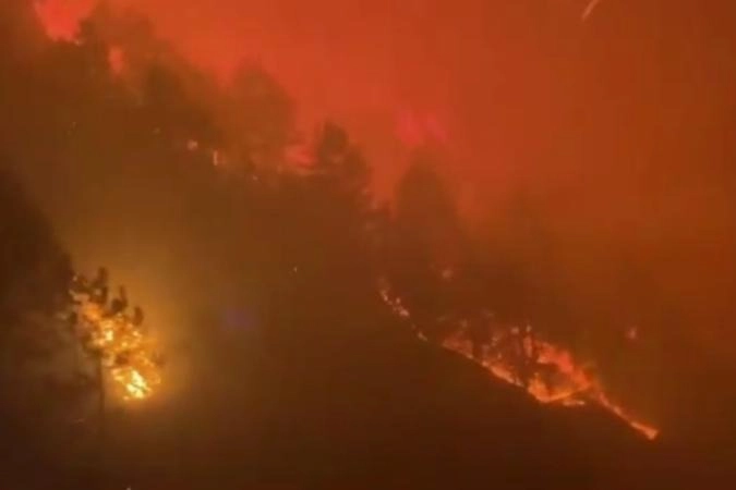 Acil Durum Bakanlığı, yangının dün öğle saatlerinde kuvvetli rüzgarın etkisiyle dağ yamaçlarına sıçrayarak yayıldığını bildirdi.