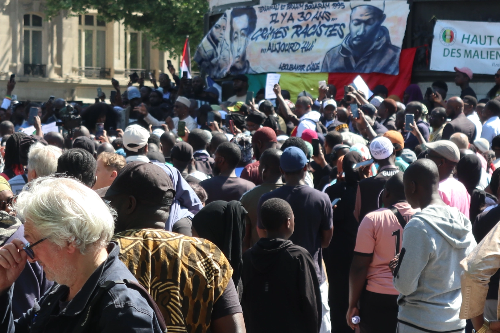Fransa'daki Malililer Yüksek Konseyi tarafından organize edilen sessiz protestoya, bazı Fransız seçilmişler ile Paris'te yaşayan bazı Müslüman ülkelerin vatandaşlarının katıldığı görüldü. Göstericilerden biri elinde "Katil suçludan siyasi medya sorumludur", "Aboubakar için adalet", "Valls (Deniz Aşırı Topraklardan Sorumlu Bakan), kelimelerle oynamayı bırak", "İslamofobi var ve öldürüyor", "Aboubakar için adalet", "Irkçılığa hayır, Müslüman olmak suç değildir" yazılı bir pankart açtılar.