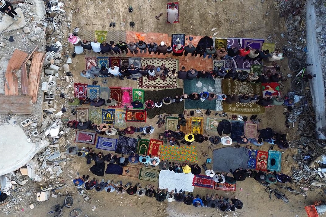 Gazze'de neredeyse sağlam cami veya mescit kalmaması nedeniyle Filistinlilerin bir kısmı da stadyum veya caddelerde cuma namazını kıldı.