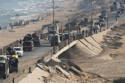 İsrail ordusunun Gazze Şeridi’nin kuzeyindeki bölgelere yönelik yoğun saldırıları ve zorunlu tahliye uyarıları nedeniyle Filistinliler, yanlarına alabildikleri eşyalarla araçlarıyla veya yaya olarak Reşid Caddesi üzerinden Gazze’nin güneyine doğru göç etmeye devam ediyor.