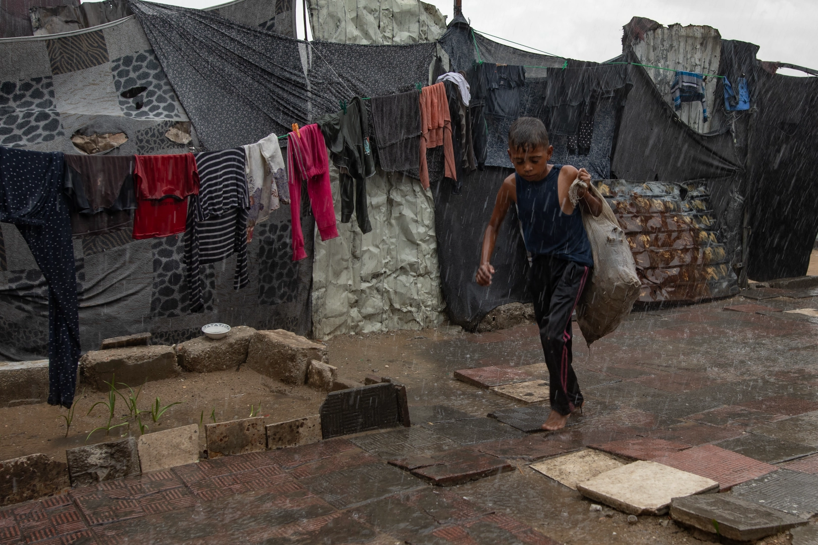 Gazze Şeridi'nin kuzeyindeki Beyt Lahye'dan Deir el-Balah'a gelen İslam Mima ise "Uyurken aniden bastıran yağmur, bizi sular altında bıraktı. Su çadırın içindeki her şeyi sular altında bıraktı. Uyuyan çocuklar, yataklar ve kıyafetler su içinde kaldı. Yatağa bak, nasıl da su basmış. Acı çekiyoruz ama ne yapacağımızı bilmiyoruz. Hayatımız bir mücadeleye dönüştü ve bu trajedinin ne zaman biteceğini bilmiyoruz" dedi. İsrail'in 7 Ekim 2023'te başlayan saldırıları nedeniyle Gazze'deki konutların yaklaşık yüzde 92'sini tamamen veya kısmen yıkıldı. Halkı büyük çoğunluğu, hiçbir koruma sağlamayan çadırlarda yaşamak veya çökme riskine rağmen hasarlı evlerinde yaşamak zorunda bırakıldı.