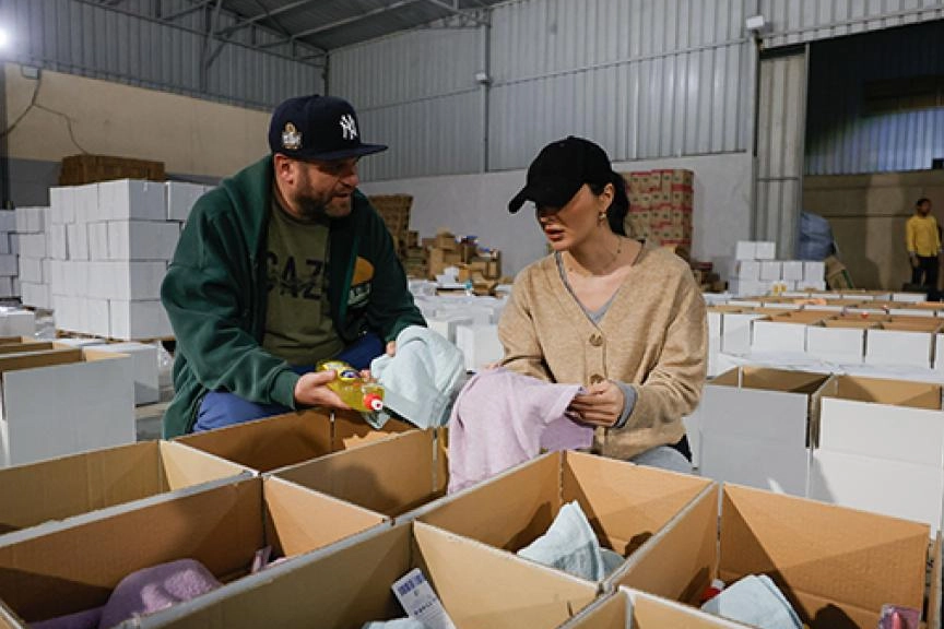 Amerikalı Yahudi aktör ve viral içerik üreticisi Berger ile İspanyol Rumen yapımcı ve oyuncu Genes, Mısır'ın başkenti Kahire'de Gazze'ye gitmek üzere hazırlanan yardımların bulunduğu depoda değerlendirmelerde bulundu.