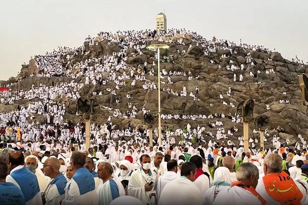 Arafat bölgesindeki bazı hacı adayları ise Cebel-i Rahme'ye çıkarak dua ediyor. Hava sıcaklığının 45 dereceyi aştığı bölgede Cebel-i Rahme çevresinde yoğunluk yaşanıyor.