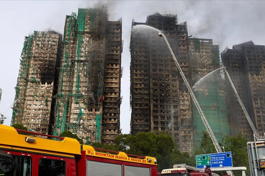 Dün öğle saatlerinde 1900'den fazla dairenin bulunduğu Wang Fuk Sitesi'nde başlayan yangın, binaların tadilatı için dış cepheye kurulu bambu iskeleler ve yanıcı izolasyon malzemeleri yüzünden hızla yayılmıştı.