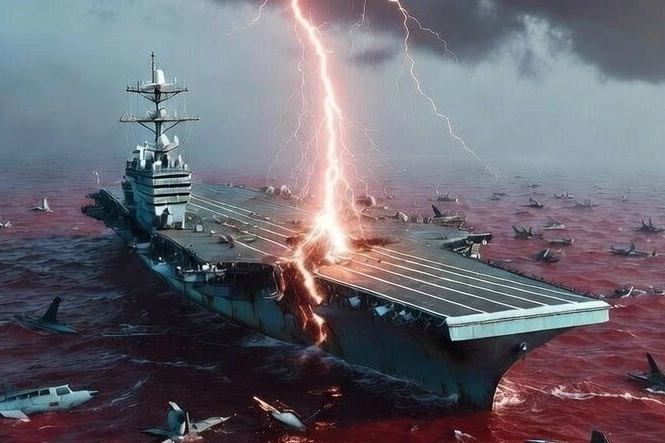 İran Devrim Muhafızları Ordusu, son dönemde artan bölgesel gerilim ve ABD'ye ait askeri unsurların bölgedeki varlığına dikkat çeken bir görsel paylaştı. Görselde, İran'a yakın bölgede konuşlu bulunan ve ABD Başkanı Donald Trump'ın son açıklamalarında sık sık tehdit unsuru olarak gündeme getirdiği USS Abraham Lincoln uçak gemisinin fırtınalı ve kan kırmızısı tonların hakim olduğu bir denizde hedef alındığı sahne yer aldı. Paylaşımda, uçak gemisine isabet eden bir yıldırımın yanı sıra ABD'ye ait savaş uçaklarının denize düşerek batmış şekilde tasvir edildiği, denize saplanmış kılıç figürlerinin öne çıktığı görüldü. Görselde ayrıca Saf Suresi'nin 13'üncü ayeti olan "Allah'tan bir yardım ve yakın bir fetih" ifadesine yer verildi.