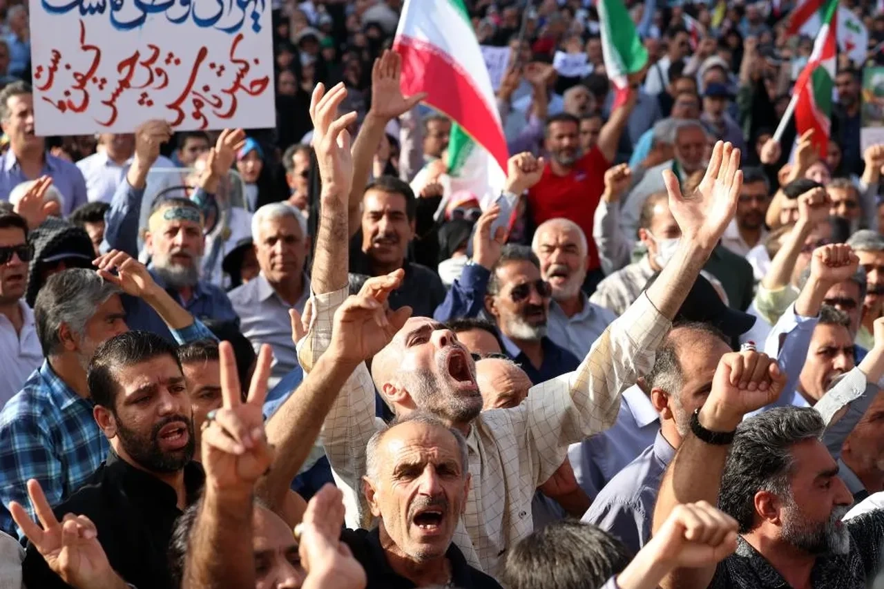 Göstericiler, "Kahrolsun ABD, kahrolsun İsrail", "Savaşmayı bilen bir milletiz", "Rehberim (Hamaney) tehlikeye düşerse dünyayı yakarım" ve "Anlaşma yok, teslimiyet yok, ABD ile savaş" sloganları attı. İran bayraklarının dalgalandığı meydanda protestocular, "ABD’ye ölüm", "İsrail’i pişman edeceğiz", "İran’a saldırı büyük bir hata", "Tabutuna selam ver Amerika" yazılı pankartlar taşıdı.