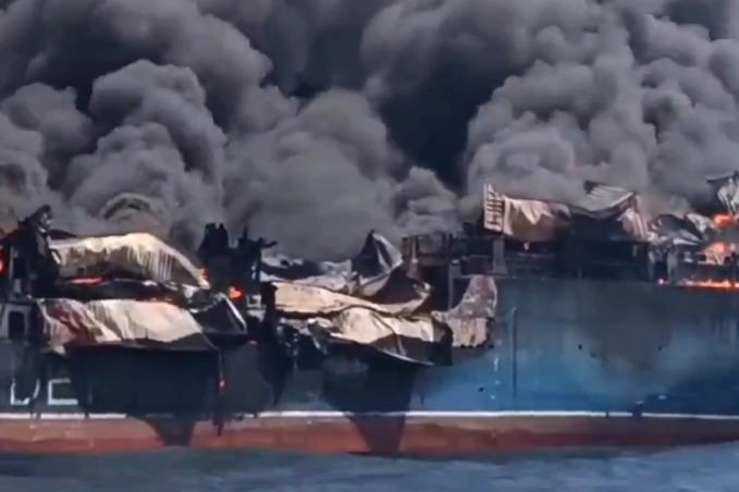 Gemi ağır hasar sebebiyle yanmaya başlarken, söz konusu geminin Tayland'a ait olduğu iddia edildi.