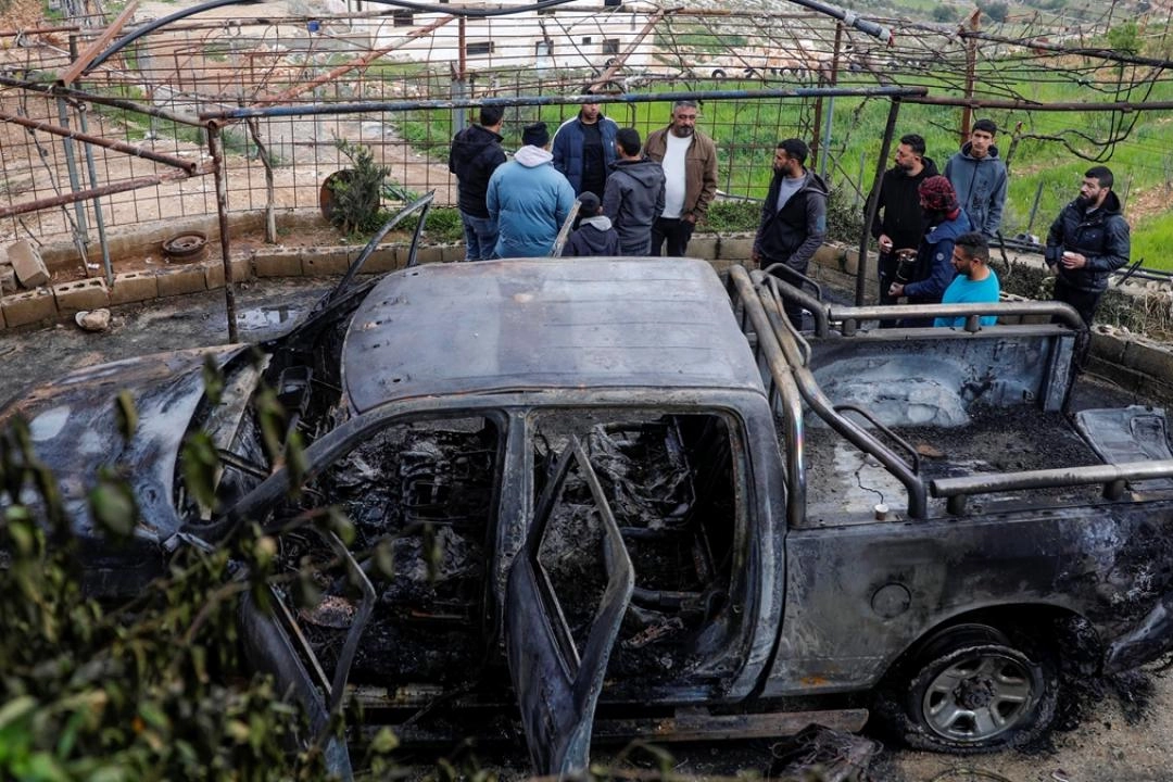 Maskeli İsrailliler, Yatta'nın kayıtlıki Mecd el-Bai bölgesindeki Filistinli kardeşler Halid ve Yasir Ebu Ali ailesinin önünde, 2 aracı ateşe verdi.
