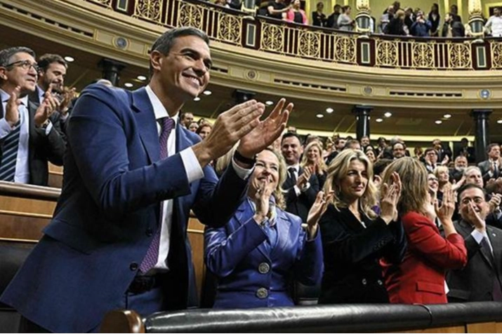 İspanya’da geçtiğimiz temmuz ayında yapılan genel seçimlerin ardından muhalefet lideri Alberto Nunez-Feijoo'nun hükümeti kuramaması nedeniyle İspanya Kralı VI. Felipe’nin hükümeti kurmakla görevlendirdiği İspanya Başbakanı Pedro Sanchez’in liderliğinde kurulacak yeni hükümet, bugün Temsilciler Meclisi’nde oylandı. Ayrılıkçı Bask ve Katalan partilerin de desteğini alan Sanchez liderliğindeki Sosyalist İşçi Partisi (PSOE) -Sumar koalisyon hükümeti, 171 hayır oyuna karşılık 179 evet oyu alarak meclisteki güven oylamasını kazandı.