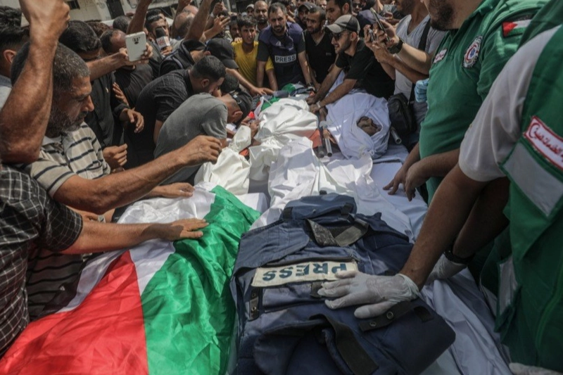 İsrail'in Gazze şehrindeki Şifa Hastanesi yakınlarında bulunan gazetecilere ait bir çadıra düzenlediği saldırıda gazeteciler Anas al-Sharif ve Mohammed Qreiqeh ile kamera operatörleri Ibrahim Zaher, Mohammed Noufal ve Moamen Aliwa hayatını kaybetmişti. Anas al-Sharif ve Mohammed Qreiqeh bugün son yolculuğuna uğurlandı. Onlarca gazeteci ve sivil savunma personeli, saldırıda hayatını kaybeden gazeteciler için cenaze namazı kılmak üzere Şifa Hastanesi'nde toplandı. Cenaze törenine katılanlar gözyaşlarına hakim olamazken İsrail karşıtı slogan attı. A-Sharif ve Qreiqeh’in cenazeleri Şeyh Radwan Mezarlığı'nda gözyaşları içinde toprağa verildi.