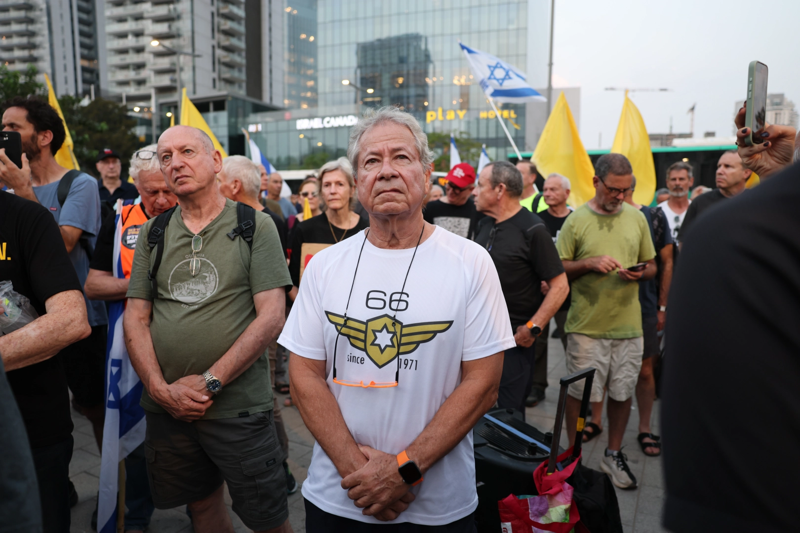 Protestocuların arasında yer alan eski bir savaş uçağı pilotu olan İsrail’in eski Genelkurmay Başkanı Dan Halutz, "Yeter. Bu gereksiz aptalca savaşı durdurun" dedi.