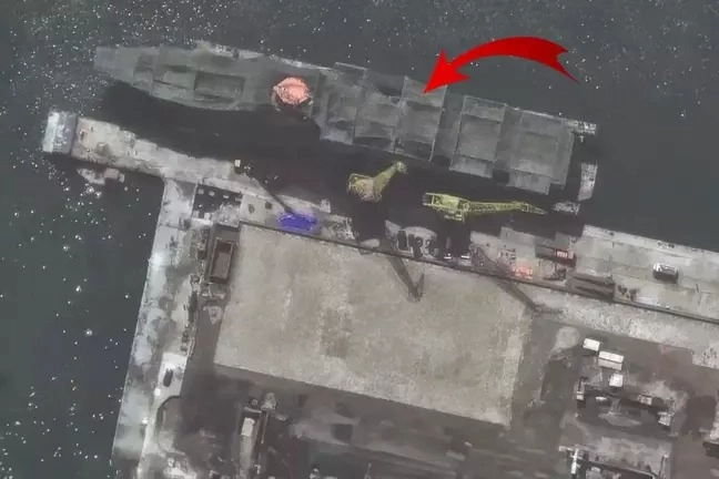 Bağımsız uydu sağlayıcıları Maxar Technologies ve Planet Labs tarafından 6 Nisan'da çekilen görüntüler, Kuzey Kore'nin batı kıyısında, başkent Pyongyang'ın yaklaşık 60 kilometre güneybatısındaki Nampo tersanesinde, suda yapım aşamasında olan gemiyi gösteriyor.