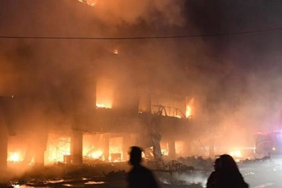 Pakistan'ın Sindh eyaletine bağlı Karaçi kentindeki Arshi Alışveriş Merkezinde bulunan mobilya çarşısı dün alevlere teslim oldu.