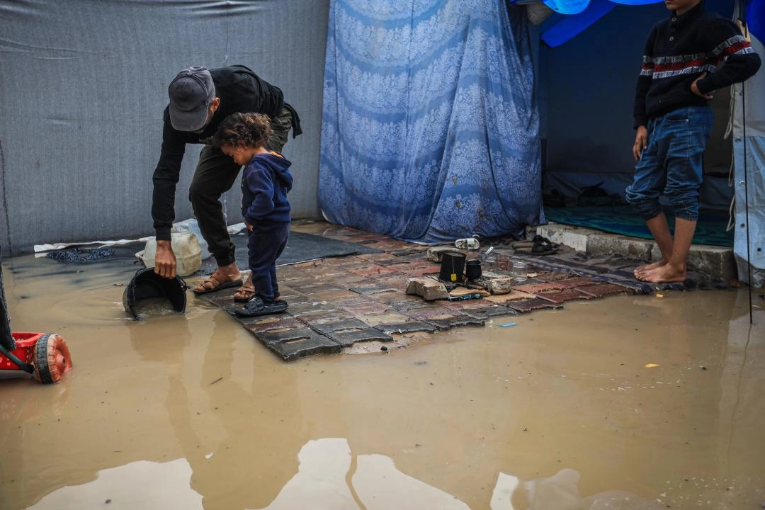 Eşyaları su altında kalan ve soğuktan korunma imkânlarını da yitiren Filistinliler, yetkililerden acil yardım talebinde bulundu.