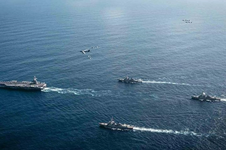 USS Gerald R. Ford liderliğindeki taarruz filosunun 4 binden fazla askeri personel ile düzinelerce taktik askeri uçağı taşıdığı kaydedilerek, "Kendi sınıfının ilk uçak gemisi olan USS Gerald R. Ford, gündüz-gece fark etmeksizin sabit kanatlı uçakların iniş ve kalkışına aynı anda imkan tanıyarak katıldığı operasyonları kesintisiz şekilde destekleyebilmektedir" hatırlatmasında bulunuldu. USS Gerald R. Ford uçak gemisinin yanı sıra, Arleigh Burke sınıfı güdümlü füze destroyerleri USS Bainbridge ve USS Mahan ile entegre hava ve füze savunma komuta gemisi USS Winston S. Churchill dahil çok sayıda askeri varlığın bölgeye konuşlandırıldığı vurgulandı.