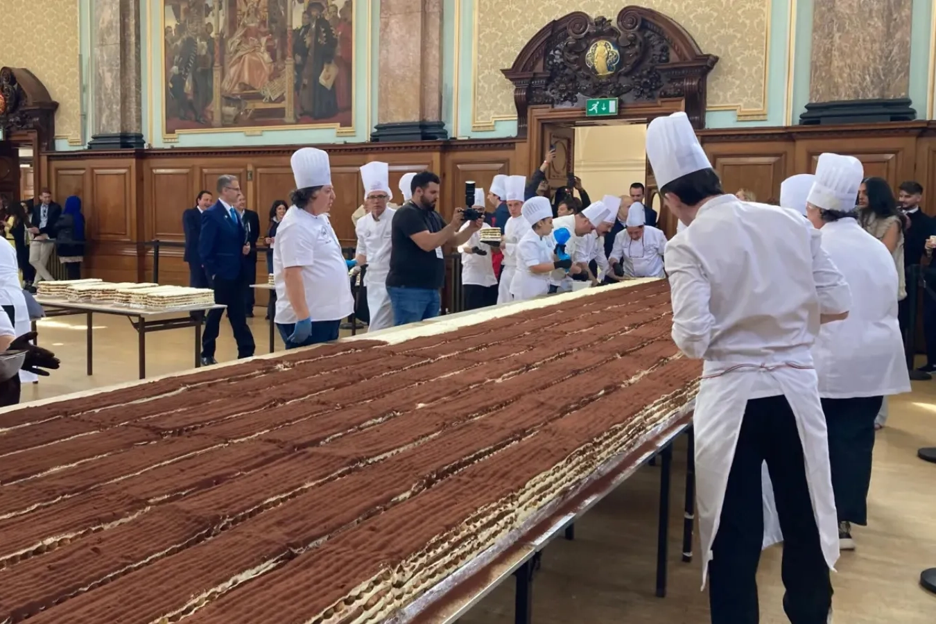 Rekor kıran tiramisu, alanda canlı olarak hazırlandı ve birleştirildi. Yapımında 50 bin kedi dili bisküvi ve 3 binden fazla yumurta kullanıldı.