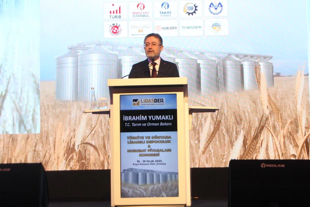 Tarım ve Orman Bakanı İbrahim Yumaklı, Lisanslı Depo Şirketleri Derneği (LİDAŞDER) tarafından bu yıl ikincisi düzenlenen "Türkiye ve Dünyada Lisanslı Depoculuk, Hububat Piyasaları Kongresi"nde yaptığı konuşmada, hububat piyasalarının yönetimi ve sürdürülebilirliği için dünyadaki gelişmeleri yakından takip etmek gerektiğini söyledi.