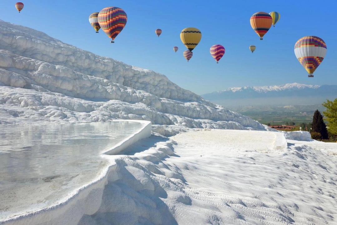 Pamukkale tarihi, kültürel ve doğal zenginliklerinin yanı sıra sıcak hava balon turu ve paraşüt sporları imkanlarıyla turistlerden ilgi görüyor.