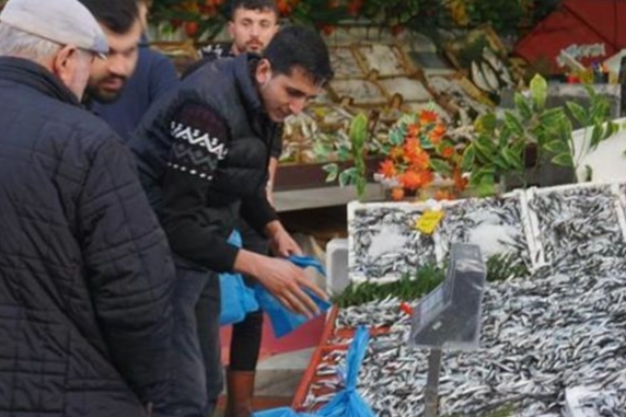 Geçtiğimiz günlerde kilosu 100 liradan satılan hamsinin fiyatı 50 liraya kadar geriledi. Fiyatların düştüğünü gören vatandaşlar, sıraya girerek balık almaya başladı.