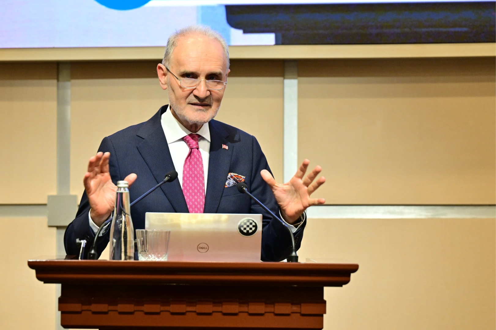 Avdagiç, konuşmasında Gazze’de İsrail’in sürdürdüğü vahşetin 600 günü geride bıraktığına dikkati çekti. Bu 600 gün boyunca, her 40 dakikada bir çocuğun, her 60 dakikada bir kadının, her 15 dakikada bir erkeğin katledildiğini ifade eden Avdagiç, "Son süreçte de gördük ki İsrail, Akdeniz’de açık denizlerde tam anlamıyla bir korsanlık yapıyor. Ne yazık ki dünyanın önemli bir kısmı da buna sessiz kalıyor" ifadelerini kullandı. Yapılan protestolar ve özellikle Türkiye gibi ülkelerin ortaya koyduğu politikalara bağlı olarak çok yakında bu problem çözülmesini temenni eden Avdagiç, "Merhum Cemil Meriç diyor ki ‘Cinayete ses çıkarmayan caninin suç ortağıdır.’ Bu sözü unutmadan, güçlü olmanın zalim olmayı meşru kıldığı, katliamın mazur görüldüğü, soykırımın meşru gösterilmeye çalışıldığı bu zamanlarda, İstanbul Ticaret Odası olarak biz de ısrarla ve kararlılıkla İsrail soykırımını bir kez daha lanetliyoruz. Gazze’ye özgürlük diye haykırmaya devam ediyoruz" diye konuştu. "Yüzde 2-3 bandına inen büyüme bu seviyelerde kalmamalı"