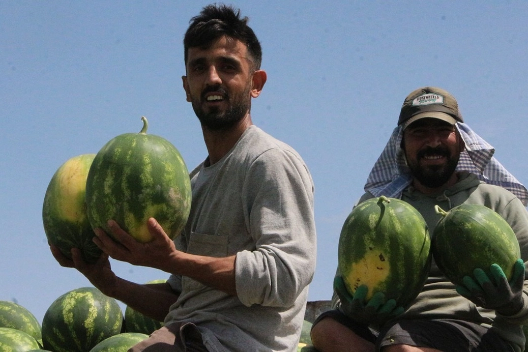 Kentin deniz kıyısındaki Karataş ilçesinin Bahçe Mahallesi'nde ilk karpuz hasadı yapıldı.