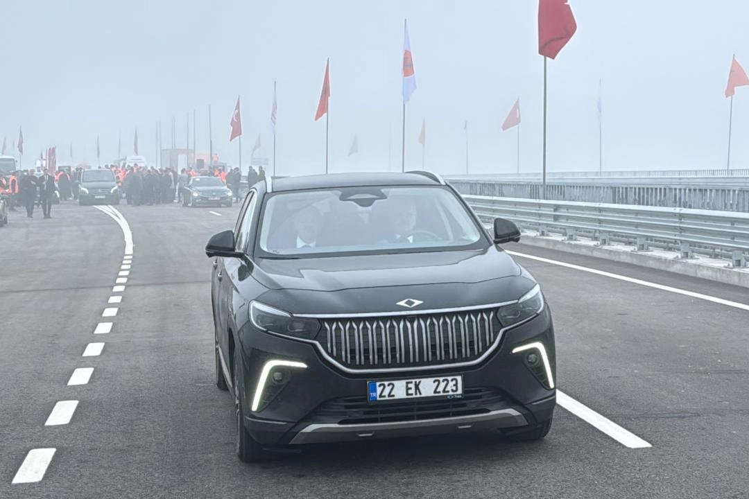 Ardından direksiyonuna geçtiği Togg'la bir süre yeni yolda ilerleyen Bakan Uraloğlu, yolun yapımında çalışan işçilerle anı fotoğrafı çektirdi.