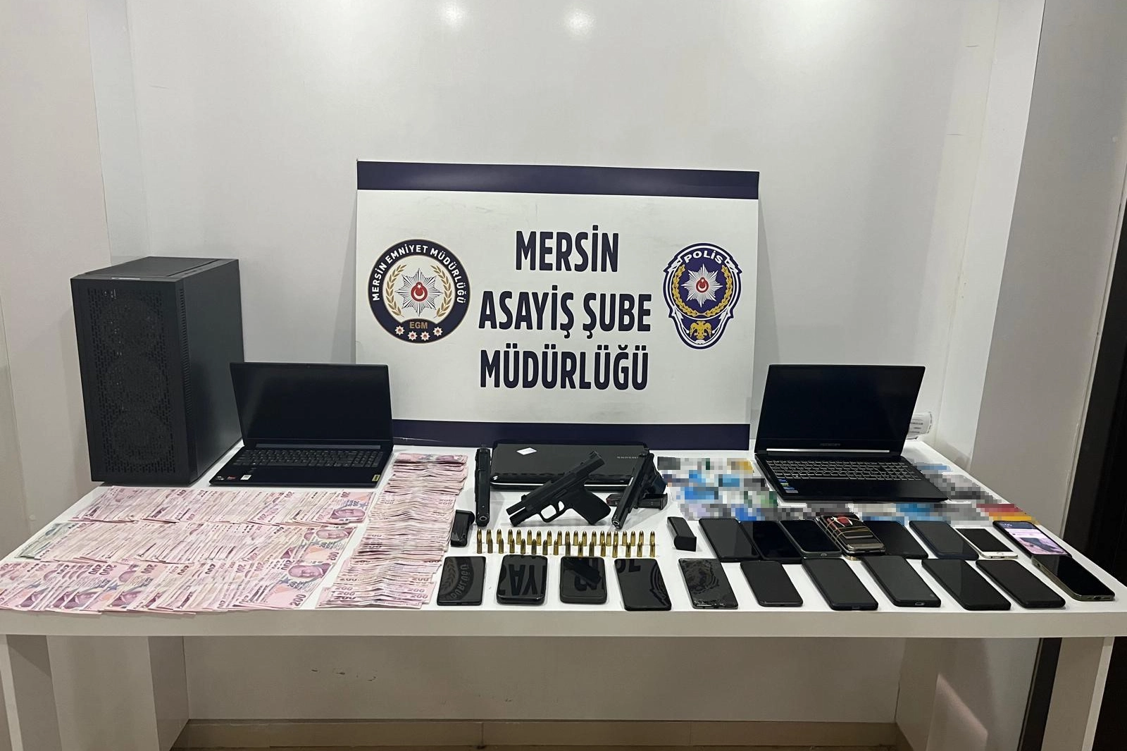 Alınan bilgiye göre, İl Emniyet Müdürlüğü Asayiş Şube Dolandırıcılık Büro Amirliğimi ekipleri, Cumhuriyet Başsavcılığı koordinesinde internet üzerinden sahte ilanla ürün satışı, bungalov ev kiralama ve şantaj yolu ile gerçekleştirilen 'Nitelikli Dolandırıcılık' suçu çerçevesinde çalışma gerçekleştirdi. Ekiplerin yaptığı teknik ve fiziki çalışmalar da şüphelilerin 150 kişiden toplam 190 milyon 965 bin TL dolandırdığı belirlendi. Bunun üzerine Mersin merkezli Adana, Şanlıurfa, Ankara, Bitlis, Gaziantep, Kütahya, Samsun, Hatay ve Malatya'da eş zamanlı operasyon düzenlendi. Operasyonda 27 şüpheli yakalandı. Yapılan aramalarda çok sayıda dijital materyal ile 3 tabanca ele geçirildi.