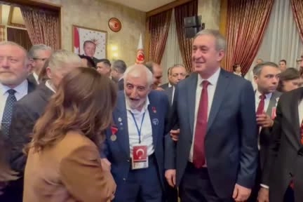 TBMM'deki 23 Nisan Resepsiyonuna katılan Türkiye İstiklal Derneği Gazileri Genel Başkanı Torun Mengüloğlu, DEM Parti Eş Genel Başkanı Tuncer Bakırhan ve DEM Partili milletvekilleri ile bir araya gelerek sohbet etti