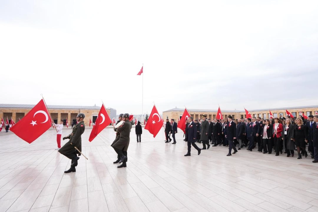 Tekin başkanlığındaki Bakanlık bürokratları ile öğretmenlerden oluşan heyet, Aslanlı Yol'dan yürüyerek Büyük Önder Gazi Mustafa Kemal Atatürk'ün mozolesine geldi.