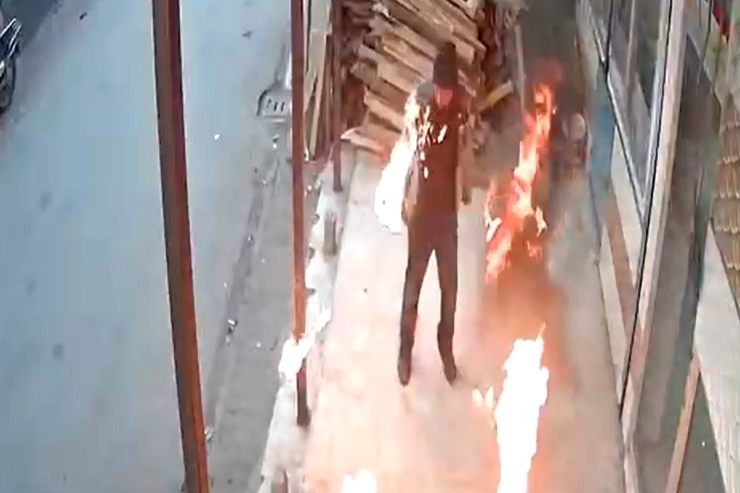Olay, Yüreğir ilçesi Yamaçlı Mahallesi’nde meydana geldi. İş yerinde çay demlemek isteyen kişi, yaktığı ateşi harlamak için motosikletinin deposundan aldığı benzini döktü. Bu sırada alev, bir anda parladı. Panikleyen ismi öğrenilemeyen kişi, yanmaktan son anda kurtuldu. O anlar iş yerinin güvenlik kamerasına anbean yansıdı.