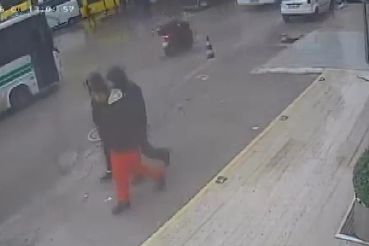Olay, Seyhan ilçesine bağlı İnönü Caddesi'nde meydana geldi. Etkili olan yağış sonrası yolda oluşan su birikintisinin altında kalan çukuru fark etmeyen motosiklet sürücüsü, bir anda dengesini kaybederek yere savruldu. O sırada seyir halinde olan otobüs, motosiklete çarpmadan son anda durabildi. Sürücü, saniyelerle otobüsün altında kalmaktan kurtuldu. O anlar güvenlik kamerasına yansıdı.