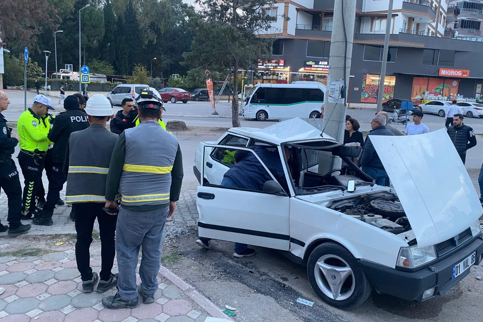 İbrahim Mete Bulvarı'nda A.Ç'nin kullandığı 01 VAL 86 plakalı otomobil elektrik direğine çarptı. Çevredekilerin ihbarı üzerine kaza yerine polis, itfaiye ve sağlık ekipleri sevk edildi.