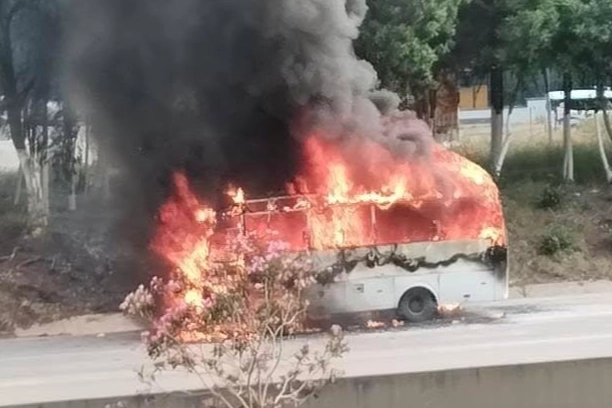 Edinilen bilgiye göre, işçileri taşıyan midibüs, otoyolun Mersin istikametinde hareket halindeyken birden alev aldı. Sürücü aracı sağa çekip durdurdu. İşçiler midibüsten inerken, araç kısa sürede alev topuna döndü. Patlamaların da olduğu midibüsü görenler itfaiyeye haber verdi. Olay yerine gelen ekiplerin söndürdüğü yangında araçtan geriye demir yığını kaldı.