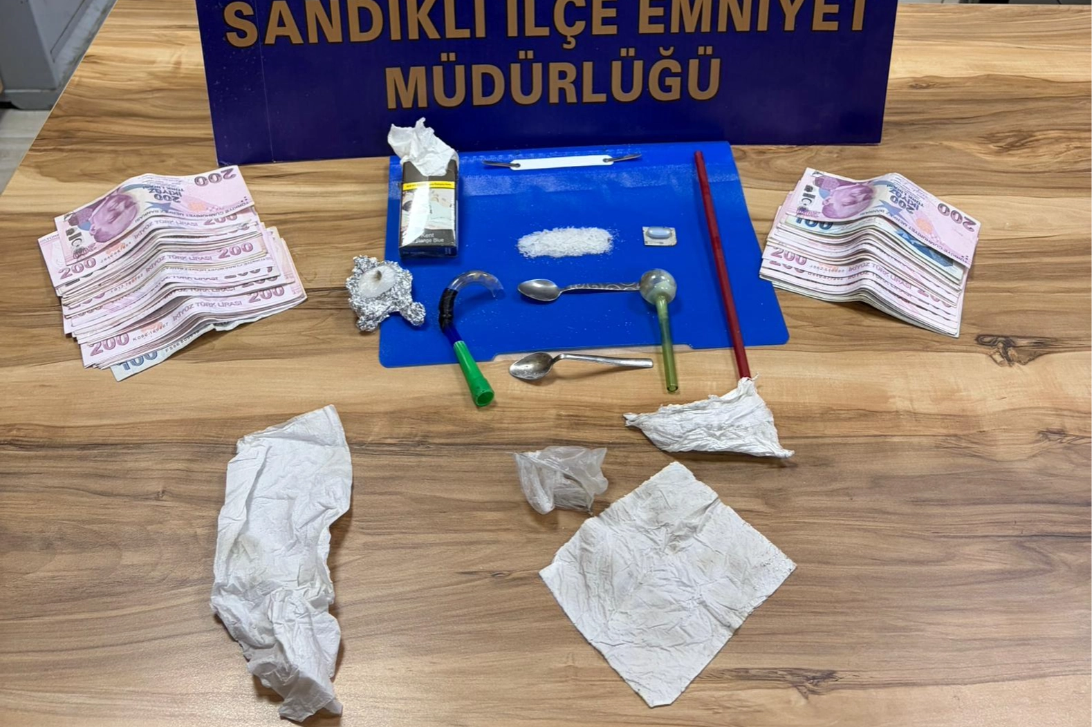 İlçe Emniyet Müdürlüğü ekiplerince, istihbarat sonucu takibe alınan otomobilde arama yapıldı.Yapılan aramada, 7 gram metamfetamin olduğu değerlendirilen kristalize madde, uyuşturucu madde emdirildiği değerlendirilen bir gram ıslak peçete, bir kırmızı reçete ile verilen ilaç, uyuşturucu madde kullanmaya yarayan pipe diye tabir edilen 3 aparat ile toplam 14 bin 890 lira para ele geçirildi.