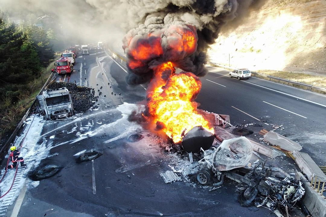 Tırdaki akaryakıtın alev alması nedeniyle patlama meydana geldi.