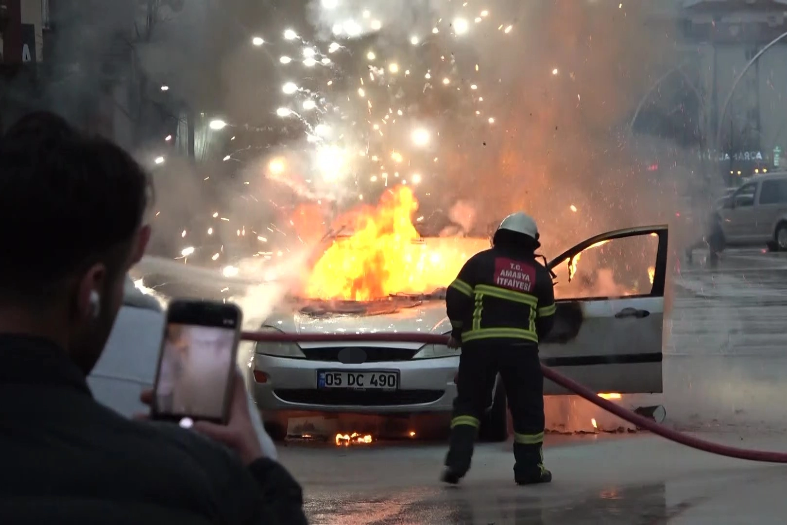 İhbar üzerine olay yerine sevk edilen itfaiye ekipleri, alevlere müdahale etti. Araçtaki patlamalar çevredeki vatandaşları korkuttu, itfaiyecilere zor anlar yaşattı. Etraftaki araçlara da sıçrayan alevler güçlükle söndürüldü.