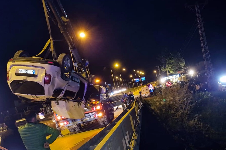 Edinilen bilgiye göre, Sinan Korucu yönetimindeki 25 ADC 888 plakalı otomobil, Tersakan 2 Köprüsü yakınlarında kontrolden çıkarak Tersakan Çayı'nın kenarına uçtu. Ters dönen otomobildeki sürücü ile araçta bulunan İzzet Mete, Recep Taşkın, Fetullah Taşkın ve Zeki Arpacı yaralandı. İhbar üzerine sağlık, itfaiye, polis ve AFAD ekipleri bölgeye sevk edildi. Otomobilden çıkartılan yaralılar, vatandaşların da yardımıyla yukarı taşınıp ambulanslarla hastaneye kaldırıldı.