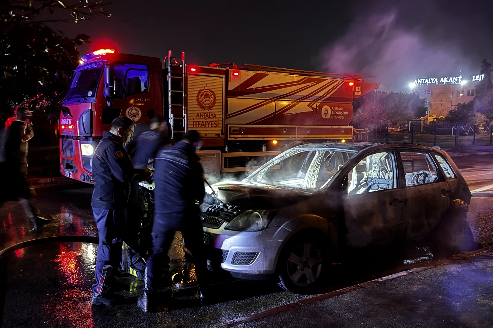 İtfaiyenin müdahalesiyle yanan otomobil ve panelvan araç söndürüldü, araçlar kullanılamaz hale geldi. Polis ekipleri elinde benzin bidonu bulunan Hüseyin A'yı gözaltına aldı.