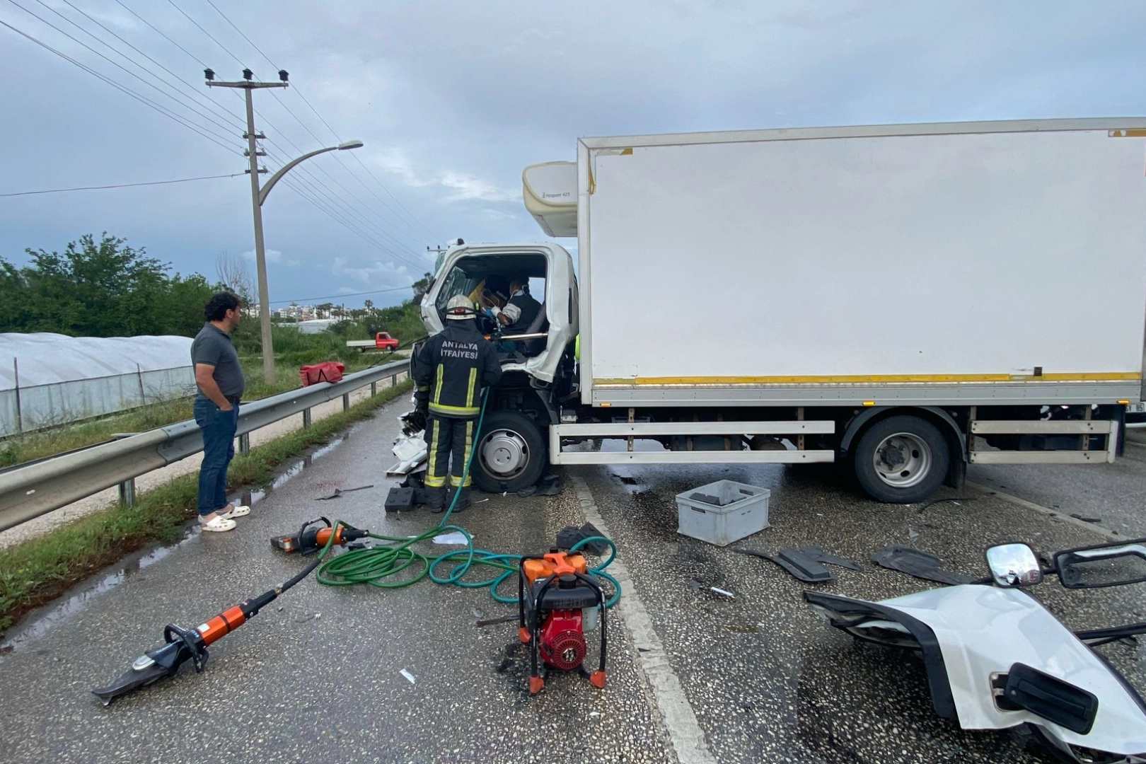 Serik ilçesi Cumalı Mahallesi, D400 karayolu üzerinde meydana gelen kazada, aynı istikamete giden Mustafa A.’nın kullandığı 07 BNE 201 plakalı kamyonet, İlhan Ç.’nin kullandığı cip ile Halil A.'nın kullandığı 26 AKT 508 plakalı kamyonet çarpıştı. İhbar üzerine olay yerine 112 itfaiye, sağlık ve polis ekipleri sevk edildi. Kazada kamyonette sıkışan sürücü Mustafa A., itfaiye ekiplerinin yardımıyla bulunduğu yerden çıkartıldı. Yaralanan sürücü Mustafa A., olay yerinde 112 Acil Sağlık ekipleri tarafından yapılan ilk müdahalenin ardından ambulans ile hastaneye kaldırıldı. Çarpmanın etkisiyle diğer kamyonette bulunan çilek kasaları zarar gördü. Kaza ile ilgili inceleme başlatılırken, çilek yüklü kamyonetin sürücüsü Halil A., "Trafik ışıklarında dururken, bir anda geldi vurdu. Bende anlamadım. Çarpmanın etkisiyle çilekler zarar gördü" dedi.