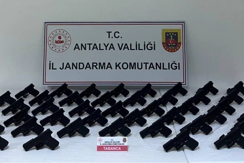 Antalya İl Jandarma Komutanlığınca yürütülen çalışmalar kapsamında, Serik Cumhuriyet Başsavcılığı talimatları doğrultusunda silah kaçakçılığı yaptığı tespit edilen şüphelilere yönelik operasyon gerçekleştirildi. Ekiplerce yapılan takip ve araştırmalar sonucunda, Serik ilçesinde ateşli silahlarla işlenen bazı olaylarda kullanılan tabancaların ticaretini yaptığı belirlenen bir şüpheliye ait araç durduruldu. Araçta yapılan aramada 45 adet Glock marka 9 mm ruhsatsız tabanca ile 45 adet tabanca şarjörü ele geçirildi. Şüpheli gözaltına alınırken, olayla ilgili adli tahkikatın devam ettiği bildirildi.
