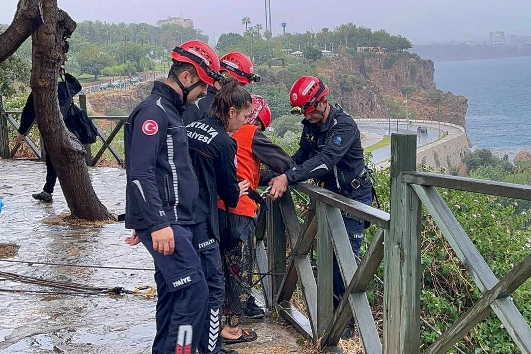 Olay, saat 16.00 sıralarında Konyaaltı Caddesi Beachpark üzerindeki falezlerde meydana geldi. Edinilen bilgiye göre, falezlerdeki patika yoldan falezlere inen Nubar B., yağış nedeniyle indiği yerden çıkamayıp mahsur kalınca çevredeki çocuklardan yardım istedi. Kadın, çocuklara bir arkadaşının telefon numarasını vererek haber vermelerini söyledi. İhbar üzerine olay yerine Antalya Büyükşehir Belediyesi itfaiye ekipleri, polis ve sağlık ekipleri sevk edildi. Ekipler, kadının bulunduğu konumu belirledikten sonra halatlı kurtarma operasyonu başlattı. Yağış nedeniyle kayganlaşan zeminde dikkatli bir şekilde hareket eden itfaiye ekipleri, halatla yaklaşık 20 metre aşağıya inerek kadına ulaştı. Zorlu arazide yapılan kurtarma operasyonu sırasında çevredeki vatandaşlar da ekiplere destek verdi. Kadın, itfaiye erinin yardımıyla güvenli şekilde yukarı çekildi. Kurtarma esnasında Nubar B'nin yukarıya çekilirken gülümsediği anlar görüntülere yansıdı. Nubar B., kurtarılmasının ardından sağlık ekipleri tarafından kontrol amaçlı ambulansa alındı.