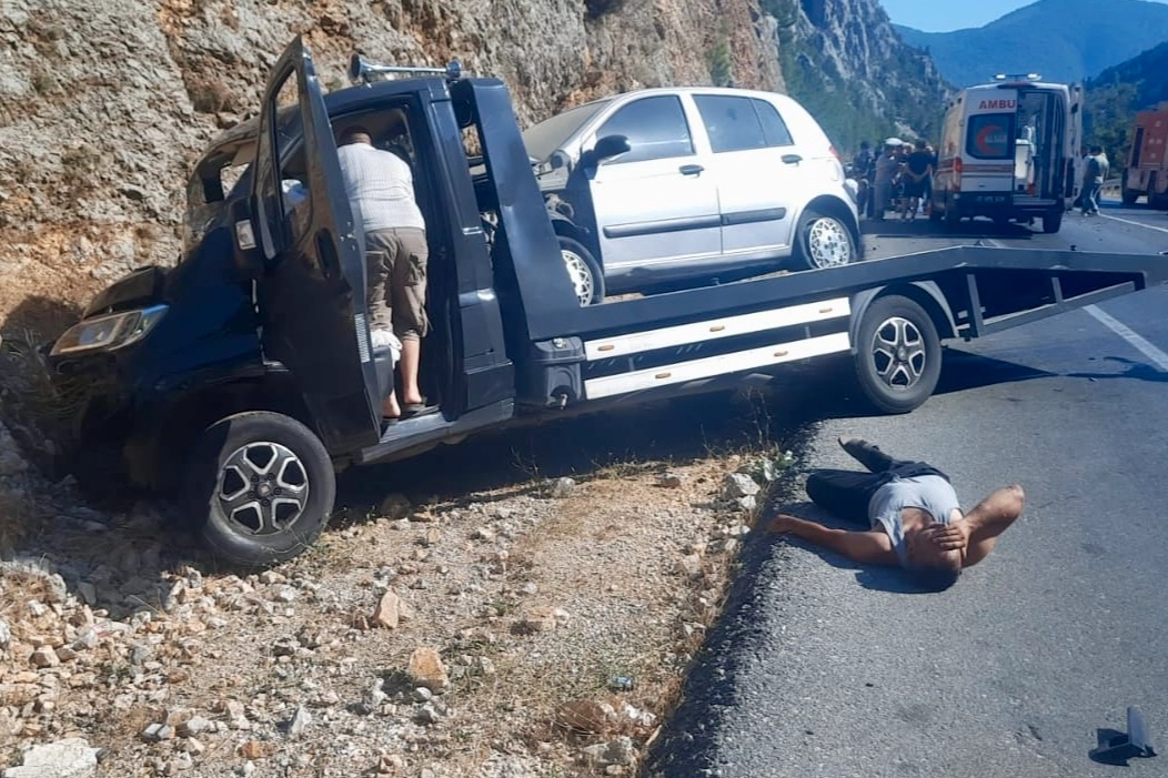 Kaza saat 15:30 sıralarında Akseki-Manavgat karayolu Derbent Boğazı mevkiinde meydana geldi. Akseki istikametinden Manavgat istikametine giden Abdulgani S, idaresindeki 07 ANY 957 plakalı otomobil, karşı şeride geçerek Manavgat yönünden Akseki yönüne gelmekte olan Nebi Y. idaresindeki 38 AJP 786 plakalı oto kurtarıcı ile çarparak yol dışına savruldu. Yoldan geçenlerin ihbarı üzerine olay yerine sağlık, itfaiye, bölge trafik ve jandarma ekipleri sevk edildi. Kazada otomobilin önünde bulunan bir kişi, sıkıştığı yerden Antalya Büyükşehir Belediyesi itfaiye ekipleri tarafından çıkarıldı. Kazada otomobil sürücüsü Abdulgani S. (65), Asya S., Sema S., Seyir S. ve çekici sürücüsü Nebi Y. yaralandı. Yaralılar, sağlık ekiplerinin ilk müdahalesinin ardından hastanelere götürüldü.