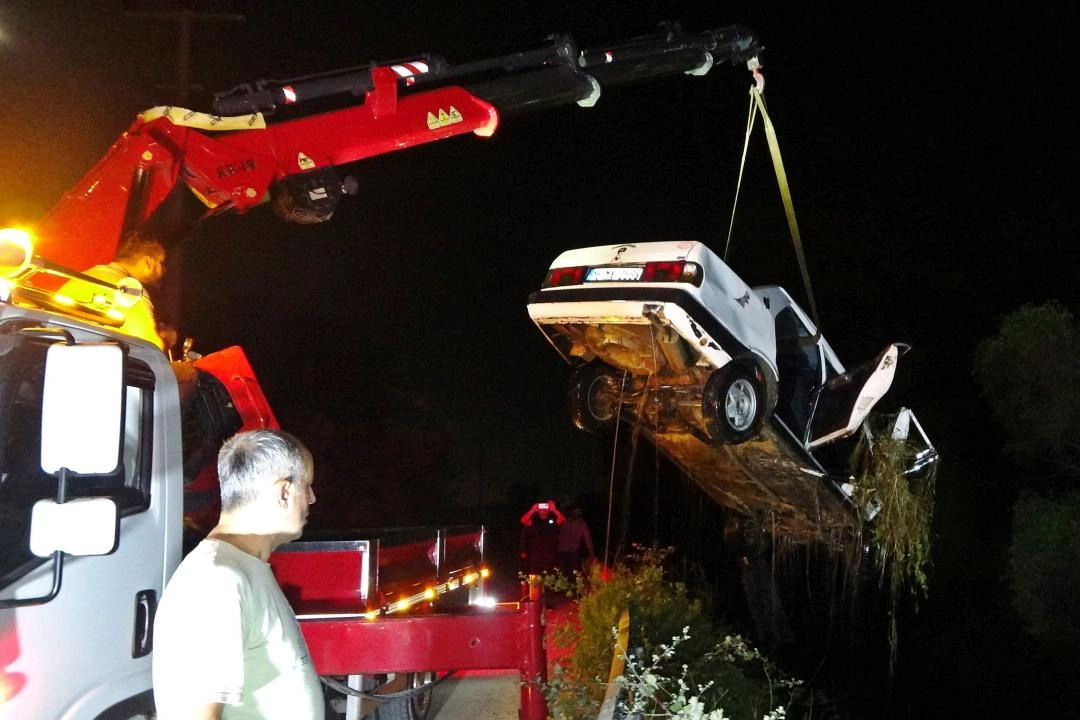 Antalya'nın Aksu ilçesinde içerisinde 5 kişi olduğu belirtilen otomobil, yaklaşık 2 metre yükseklikteki köprüden dereye uçup suya gömüldü.