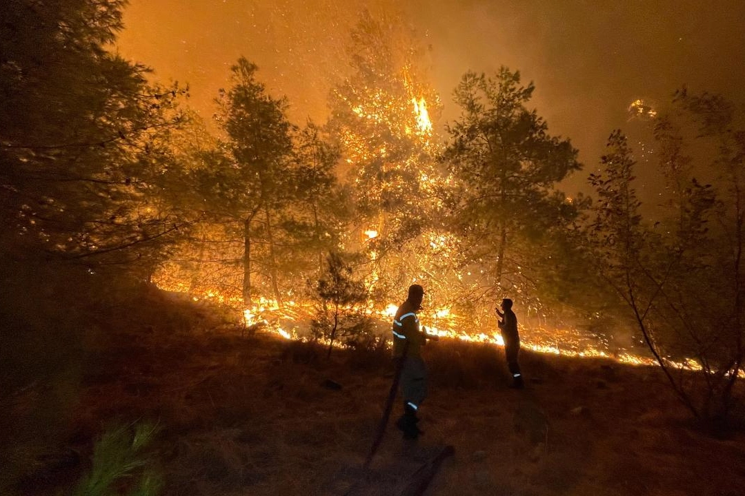 Havalanan helikopterler, yangın havuzları ve denizden aldıkları suyu yanan alanlara taşıyor. Çok sayıda itfaiye ekibi ve orman işçileri, alevlerin yayılmaması için mücadele ediyor.