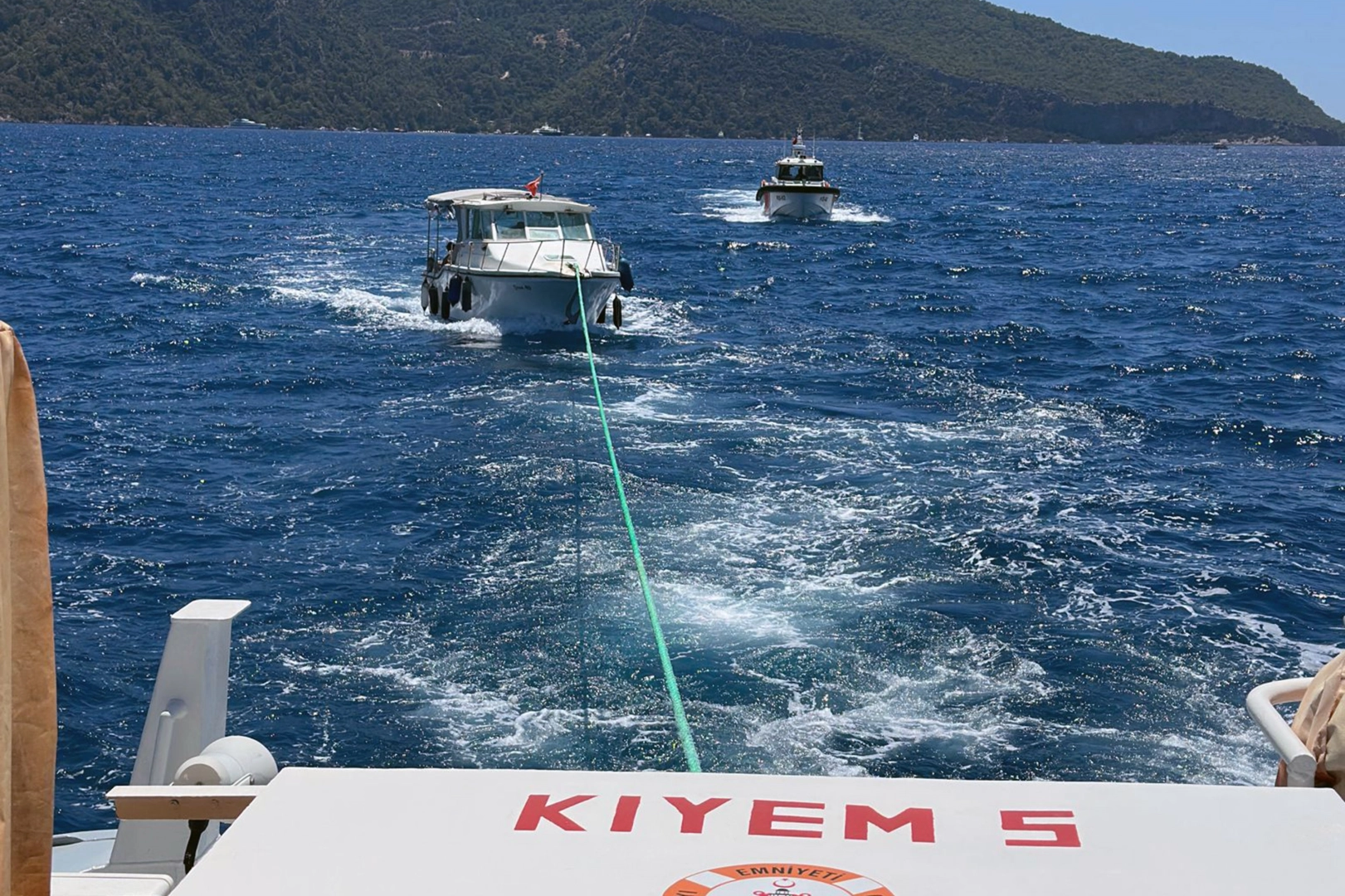 Fethiye Turunç Pınarı Koyu önlerinde makine arızası nedeniyle sürüklenen ve içerisinde 6 kişi bulunan tekne, KIYEM-5 hızlı tahliye (can kurtarma) botu tarafından yedeklenerek Fethiye Limanı’na emniyete alındı.