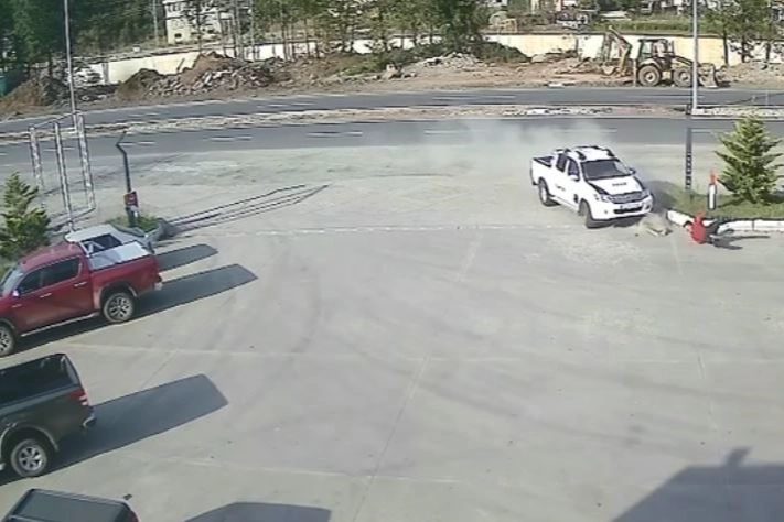 O anlar güvenlik kamerasına saniye saniye yansıdı. Görüntülerde, Yüksel Gaz'ın istasyon önünde beklediği sırada üzerine gelen aracın çarpması ve çarpmanın etkisiyle savrulması yer alıyor.