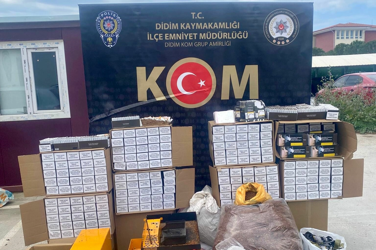 Aydın İl Emniyet Müdürlüğü Kaçakçılık ve Organize Suçlarla Mücadele Şube Müdürlüğü Didim Büro Amirliği ekiplerince, ilçede dün eş zamanlı kaçakçılık operasyonu düzenlendi. Yapılan çalışmalarda; 195 bin 900 tütün doldurulmuş makaron, 86 bin 800 boş makaron, 49 kilo kıyılmış tütün, 1 sigara sarma makinesi, 3 cep telefonu ve 41 tabanca fişeği ele geçirildi. Operasyon kapsamında gözaltına alınan M.A., Ö.B. ve İ.Ö., emniyetteki işlemlerinin ardından adliyeye sevk edildi. Kaçakçılıkla Mücadele Kanunu'na Muhalefet suçundan haklarında adli işlem yapılan 3 şüpheliden M.A., çıkarıldığı mahkemece tutuklanırken, diğer iki şüpheli serbest kaldı.