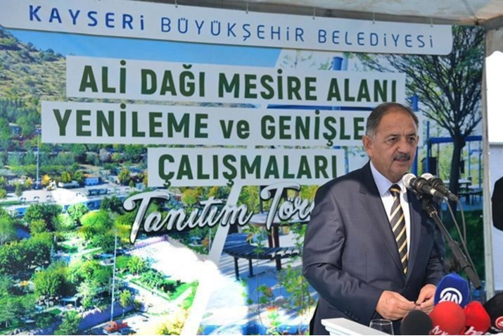 Ali Dağı Mesire Alanı Yenileme ve Genişletme Çalışmaları Tanıtım Töreni’ne, Çevre, Şehircilik ve İklim Değişikliği Bakanı Mehmet Özhaseki, Kayseri Valisi Gökmen Çiçek, Çevre, Şehircilik ve İklim Değişikliği Bakan Yardımcısı Refik Tuzcuoğlu, AK Parti Kayseri Milletvekilleri Ayşe Böhürler, Şaban Çopuroğlu ve S. Bayar Özsoy, Büyükşehir Belediye Başkanı Dr. Memduh Büyükkılıç, AK Parti Kayseri İl Başkanı Fatih Üzüm, AK Parti Kayseri Kadın Kolları Başkanı Emine Timuçin, Melikgazi Belediye Başkanı Mustafa Palancıoğlu, Kocasinan Belediye Başkanı Ahmet Çolakbayrakdar, Talas Belediye Başkanı Mustafa Yalçın, bürokratlar ile il protokolü katıldı. Saygı duruşunda bulunulması ve İstiklal Marşı’nın okunmasıyla başlayan programda konuşan Başkan Büyükkılıç, “Şehrimize en güzel mesire alanlarından birisi olarak eklenmiş olan bu halkanın yenilenmesi sürecinde emeği geçenlere teşekkür ediyorum” dedi.
