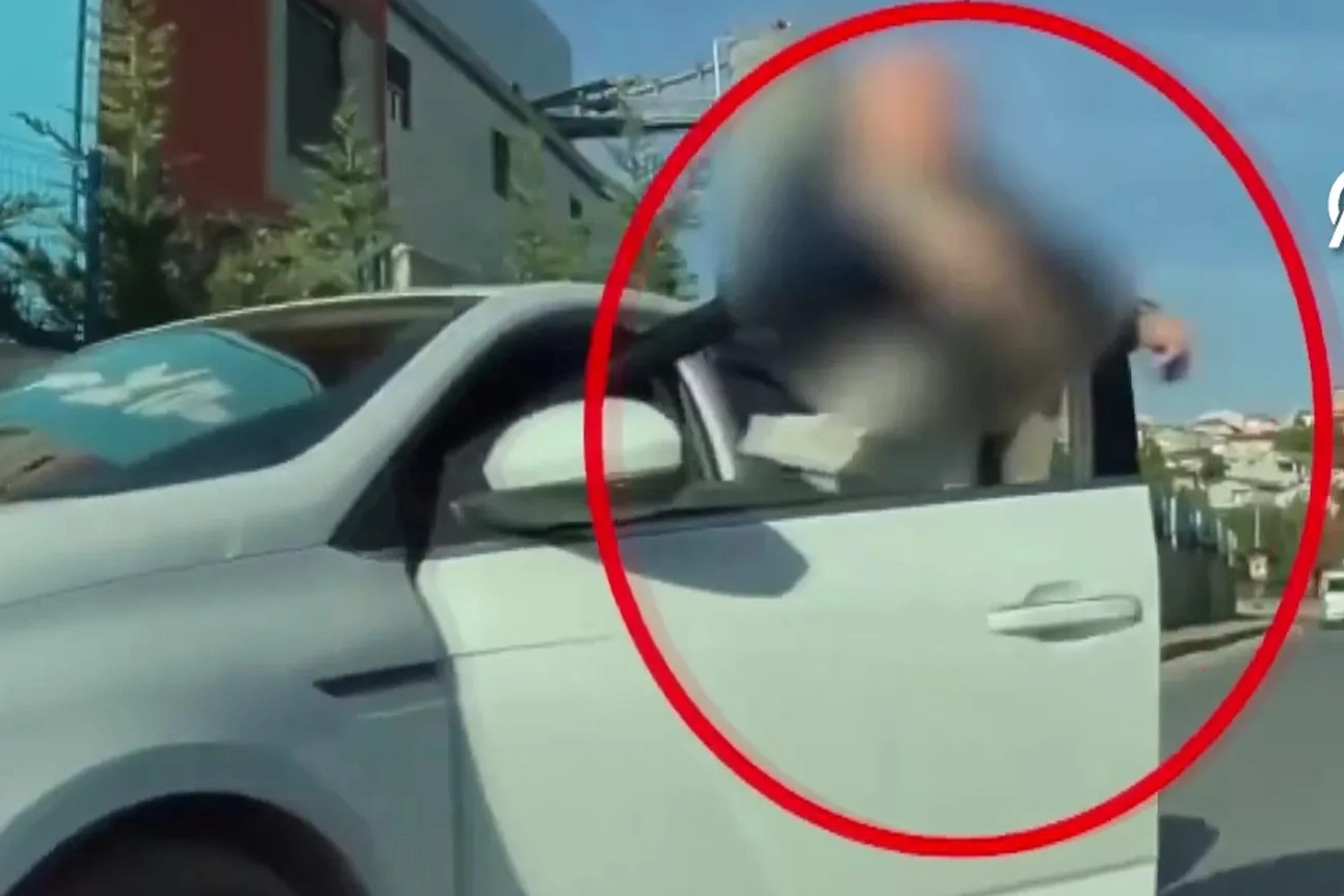 İstanbul'un Sarıyer ilçesinde aracıyla bir başka sürücünün önünü kesmeye çalışan ve trafik güvenliğini tehlikeye düşüren kişi yakalandı.