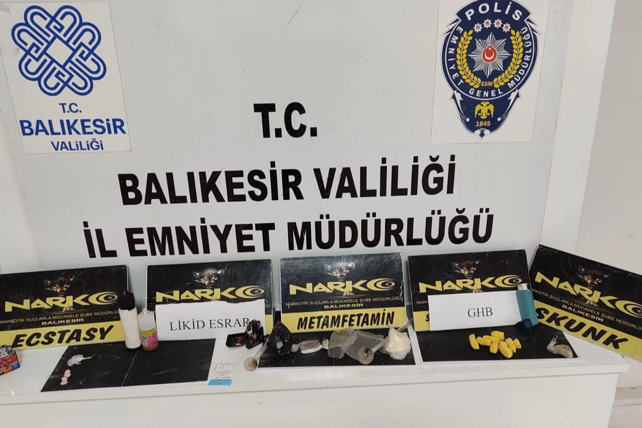 Balıkesir İl Emniyet Müdürlüğü Narkotik Suçlarla Mücadele ekipleri bugün gerçekleştirdiği uyuşturucu operasyonunda 90 gram likit esrar, 29 gram uyuşturucu GHB maddesi, 24 gram metamfetamin, 1.33 gram esrar, 4 adet ecstacy hap ele geçirildi. Konuyla ilgili narkotik madde ticareti suçundan adli makamlara sevk edilen bir şüpheli şahıs tutuklandı.